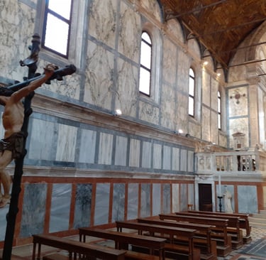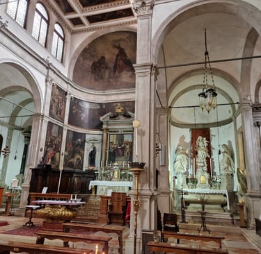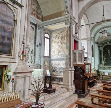 On va tout de suite visiter l’église San Giovanni Crisostomo…. Cette église a été construite de 1497 à 1504 par Mauro Codussi. Elle exista dès le XIème siècle mais fut détruite par un incendie en 1475...