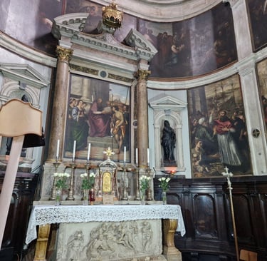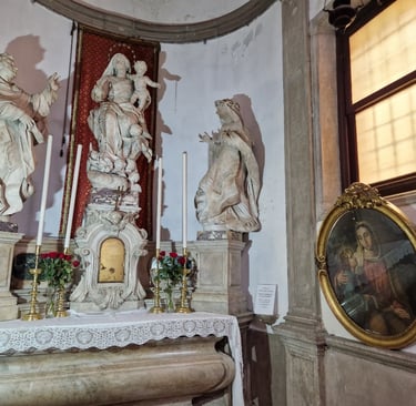 Et de chaque côté de l'autel, il y a deux statuettes réalisées au XVIème siècle par Alessandro Vittoria...