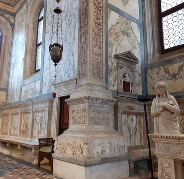 Oui, elle est l'œuvre de Giorgio Lascaris ; elle date de la fin du XVème siècle... Les autres sculptures ont été réalisées par l'architecte Pietro Lombardo...