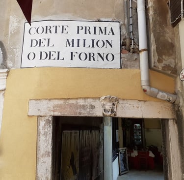 Il fut fait prisonnier alors qu’il participait à une bataille navale entre Venise et Gênes, dans les îles grecques de Curzolari…. Sa maison se trouvait plutôt dans la corte seconda del Million, que l’on va rejoindre par la calle del Million et en passant sous ce sottoportego….