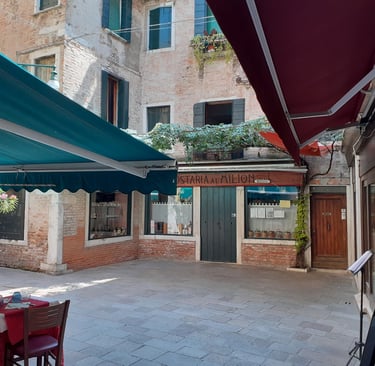 On va maintenant retourner dans la corte prima del Million pour déjeuner à l’osteria al Million…