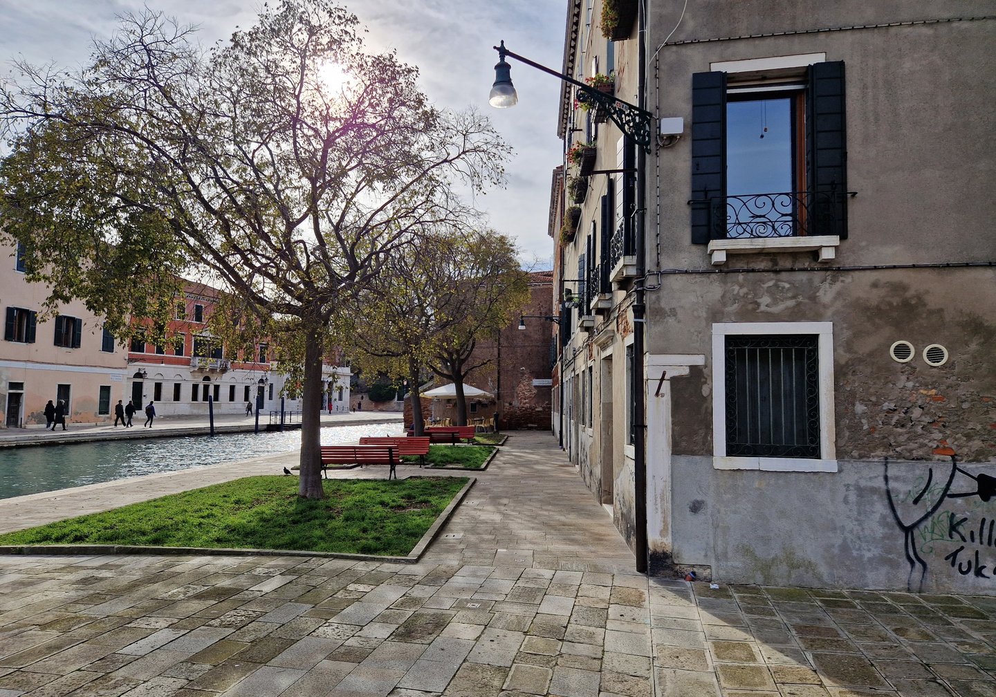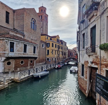 On rejoint la calle de la Vida et on poursuit par la calle del Campaniel qui nous conduit au campo San Ternita, où on va faire une petite pause dans notre gondole…
