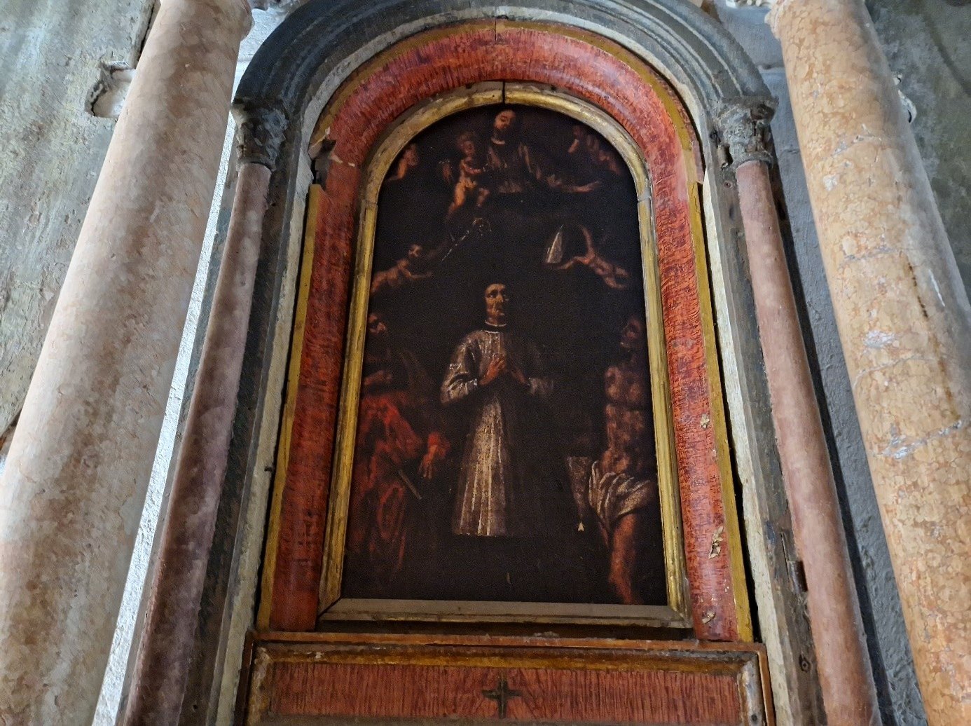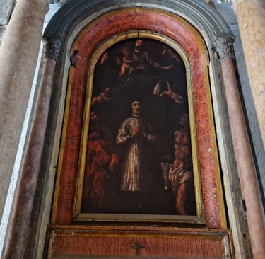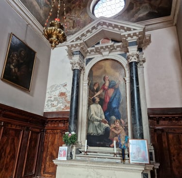 Le retable, réalisé au XVIIème siècle par Giovanni Segala, représente Sainte Cécile en compagnie de San Lorenzo Giustiniani, qui fut évêque de Castello au début du XVème siècle... A gauche du reytable, est représenté San Giuseppe e il Bambino...