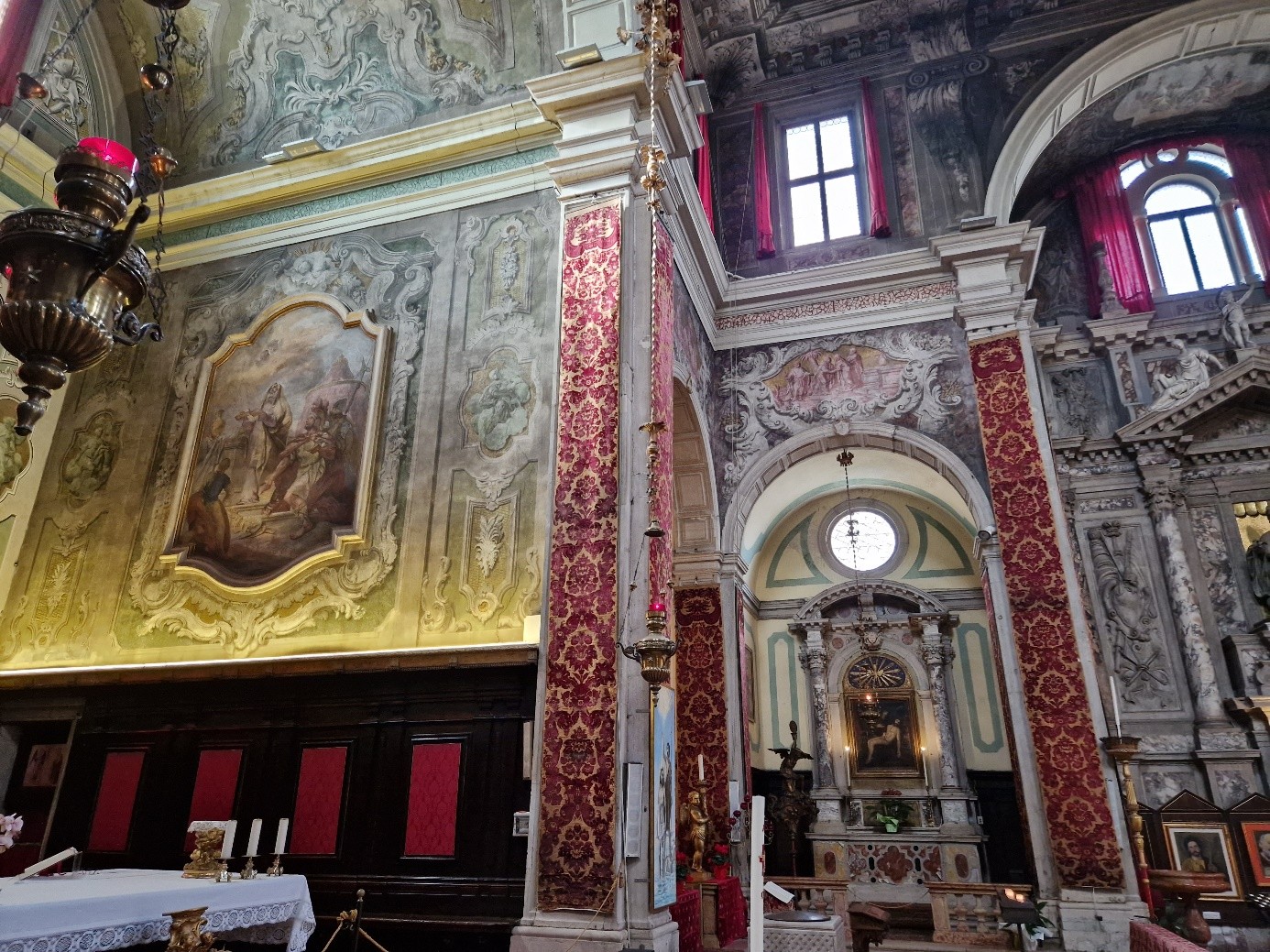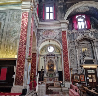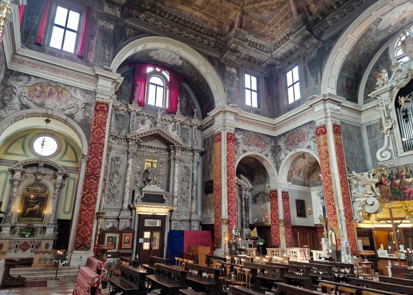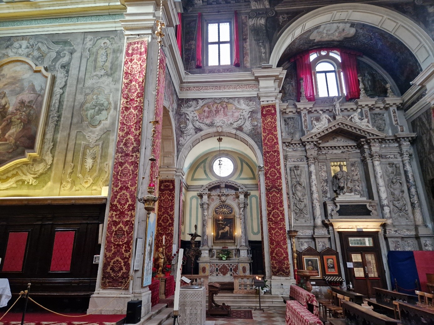 La décoration intérieure date essentiellement du XVIIIème siècle... Comme, par exemple, celle du maître-autel : Fabio Canal a représenté au plafond La gloria del Santissimo Sacramento...
