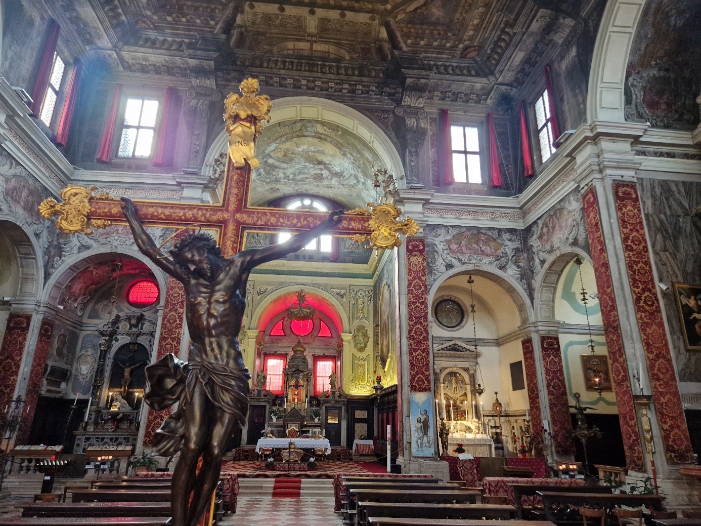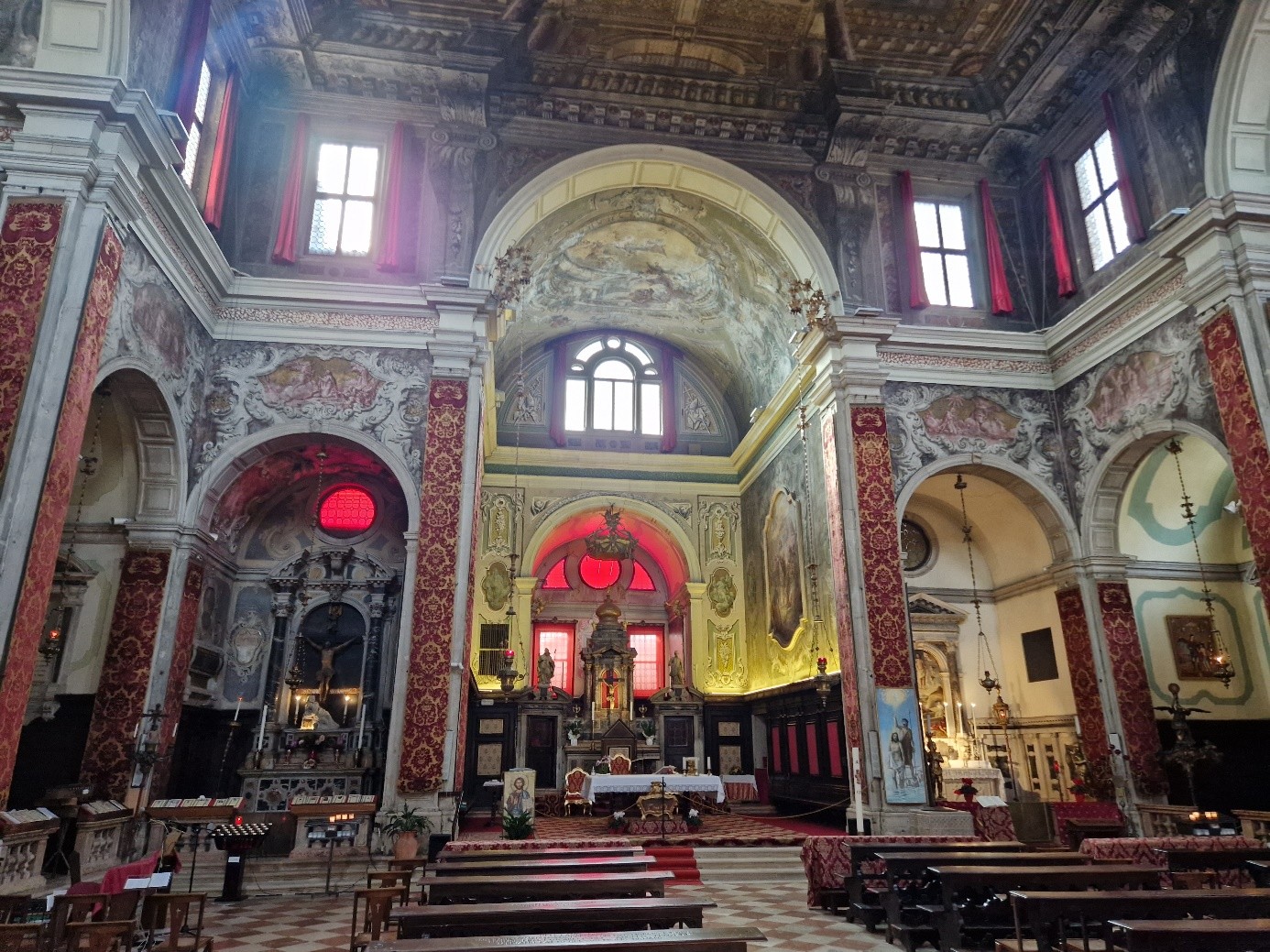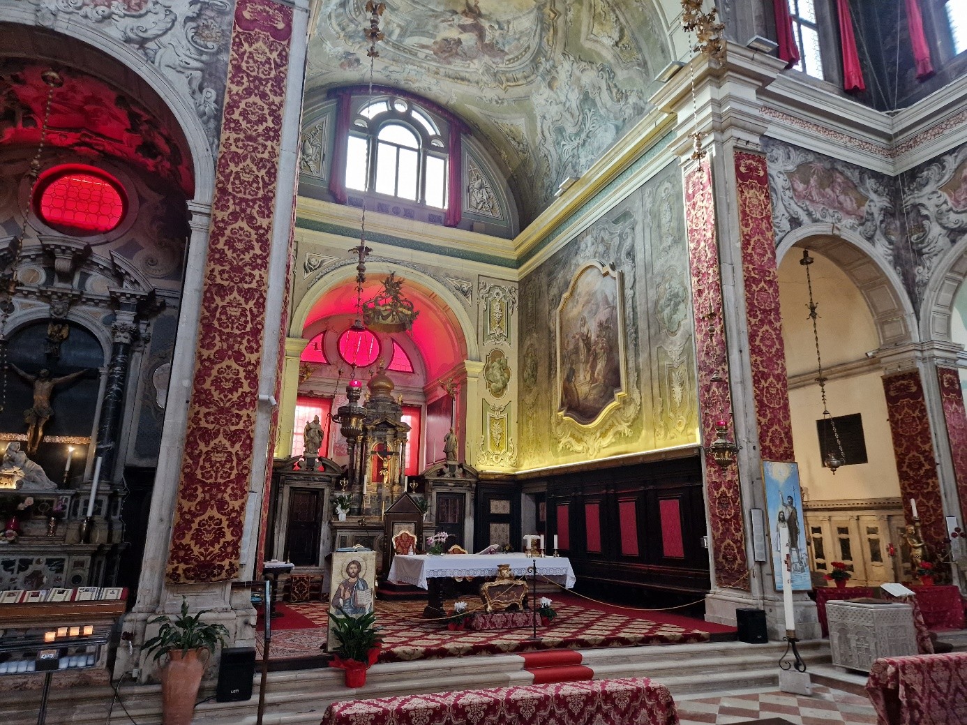 La décoration intérieure date essentiellement du XVIIIème siècle... Comme, par exemple, celle du maître-autel : Fabio Canal a représenté au plafond La gloria del Santissimo Sacramento...