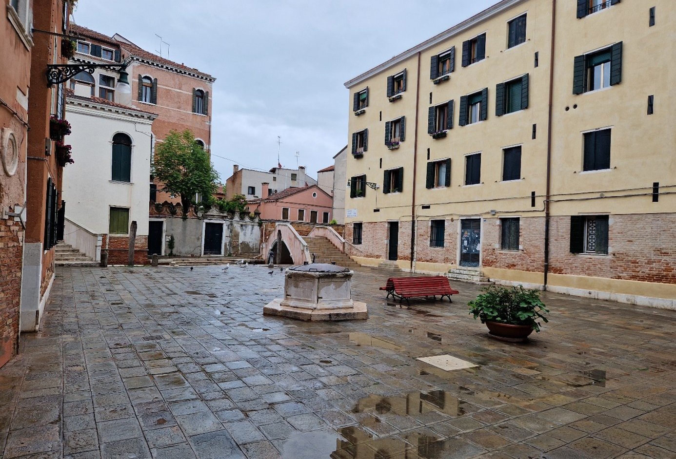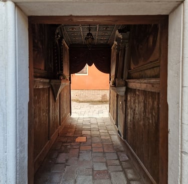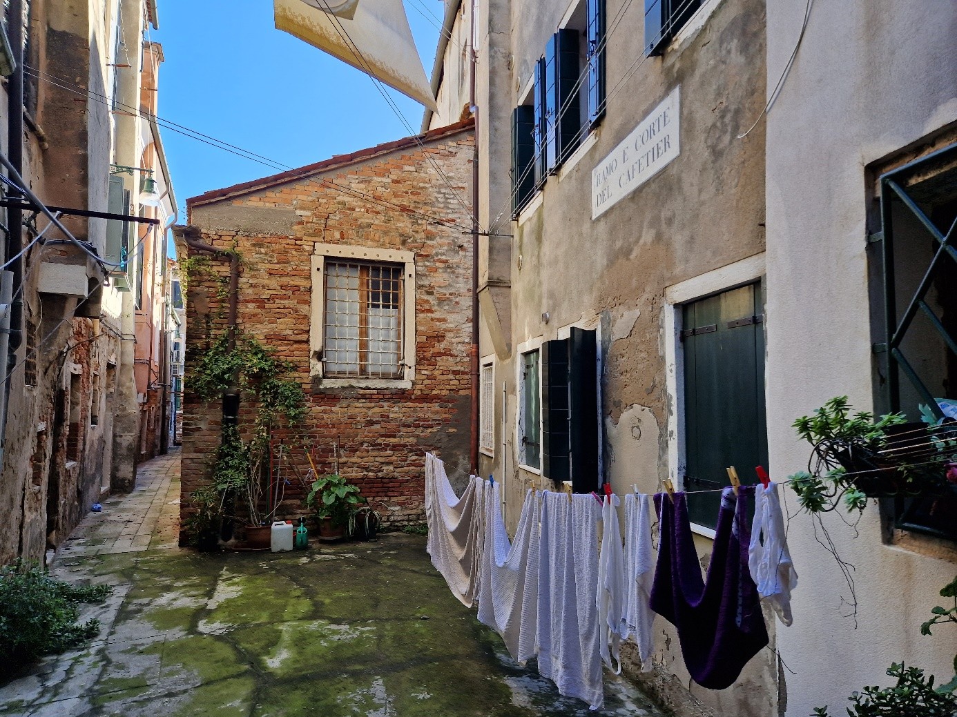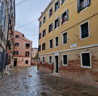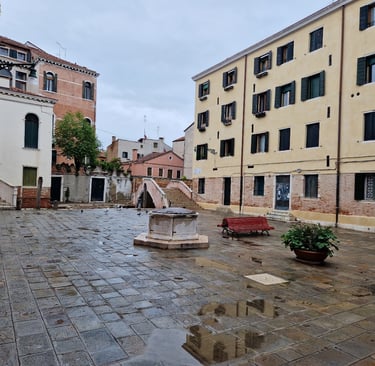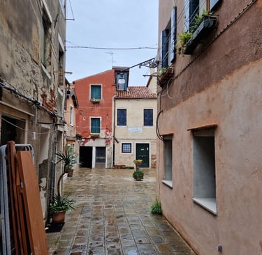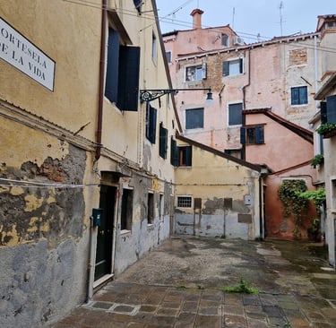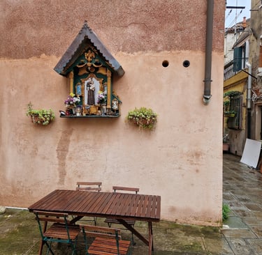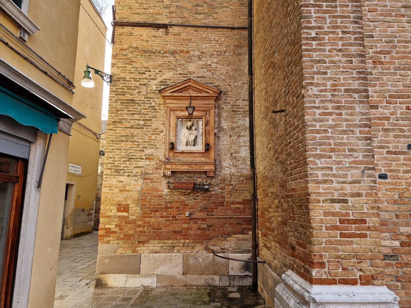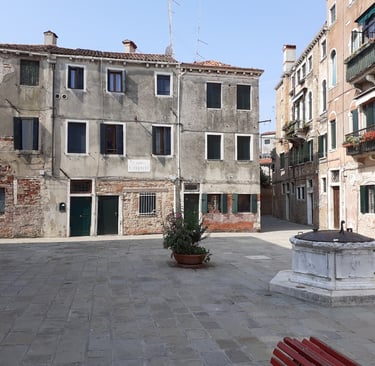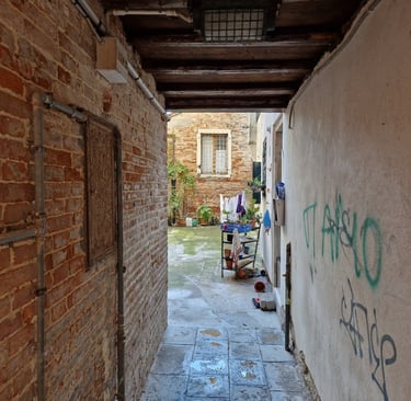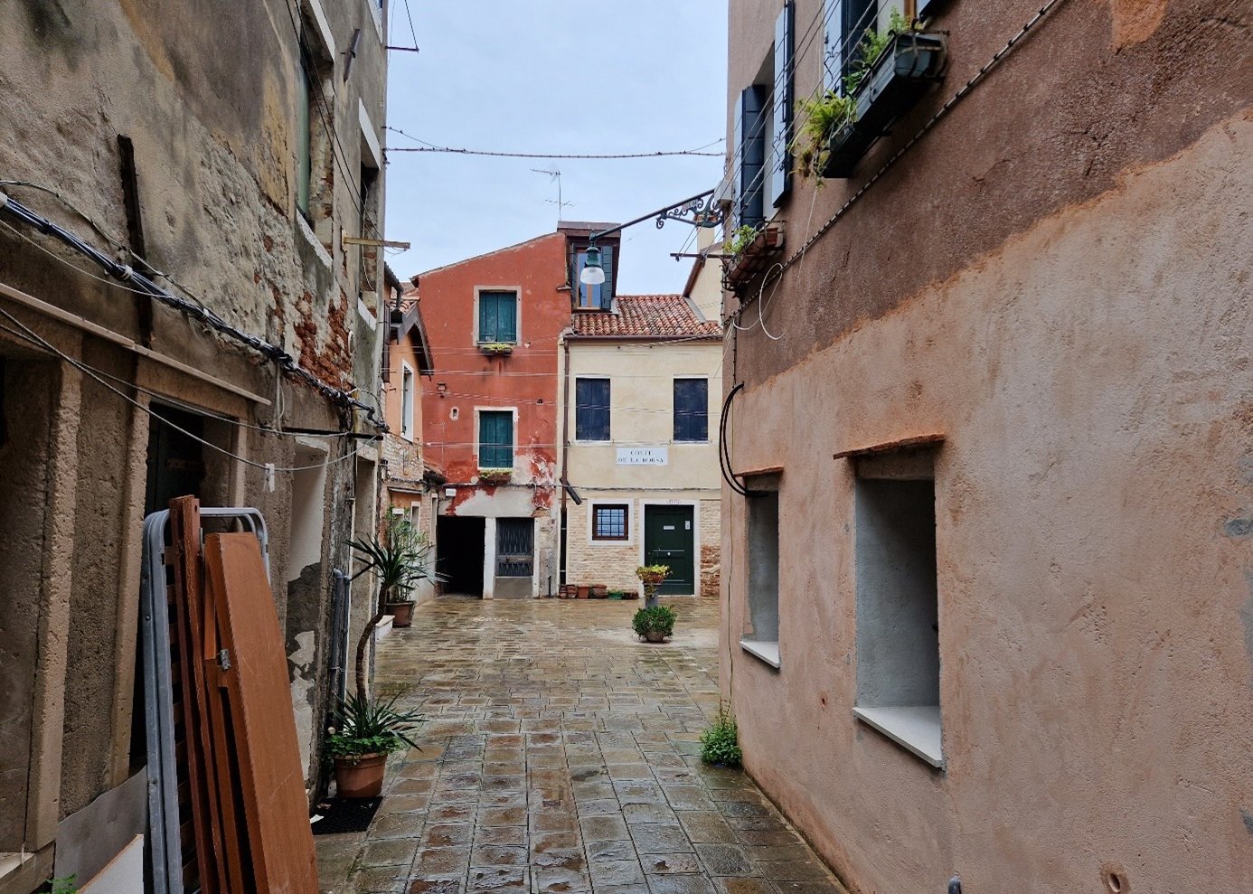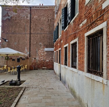 Oui, on sera bien sur cette place tranquille…. On va d’abord voir le plus beau sottoportego de Venise, celui de la corte Nuova…