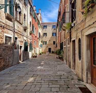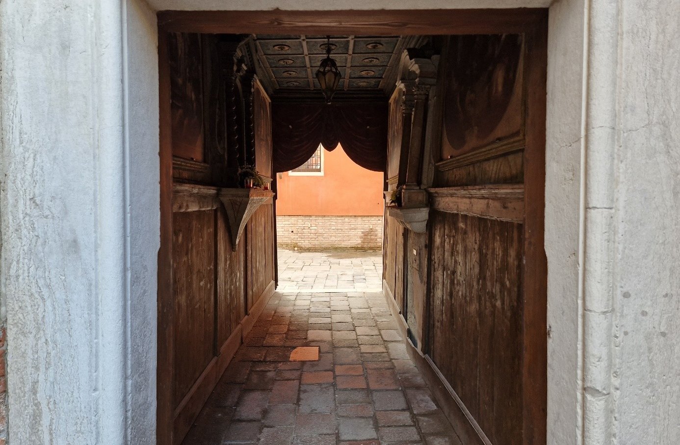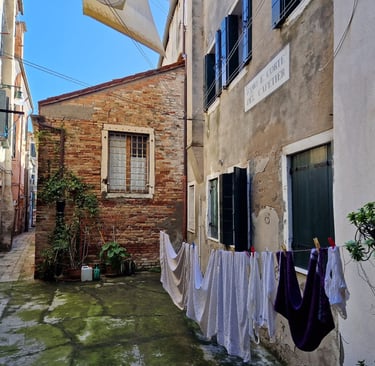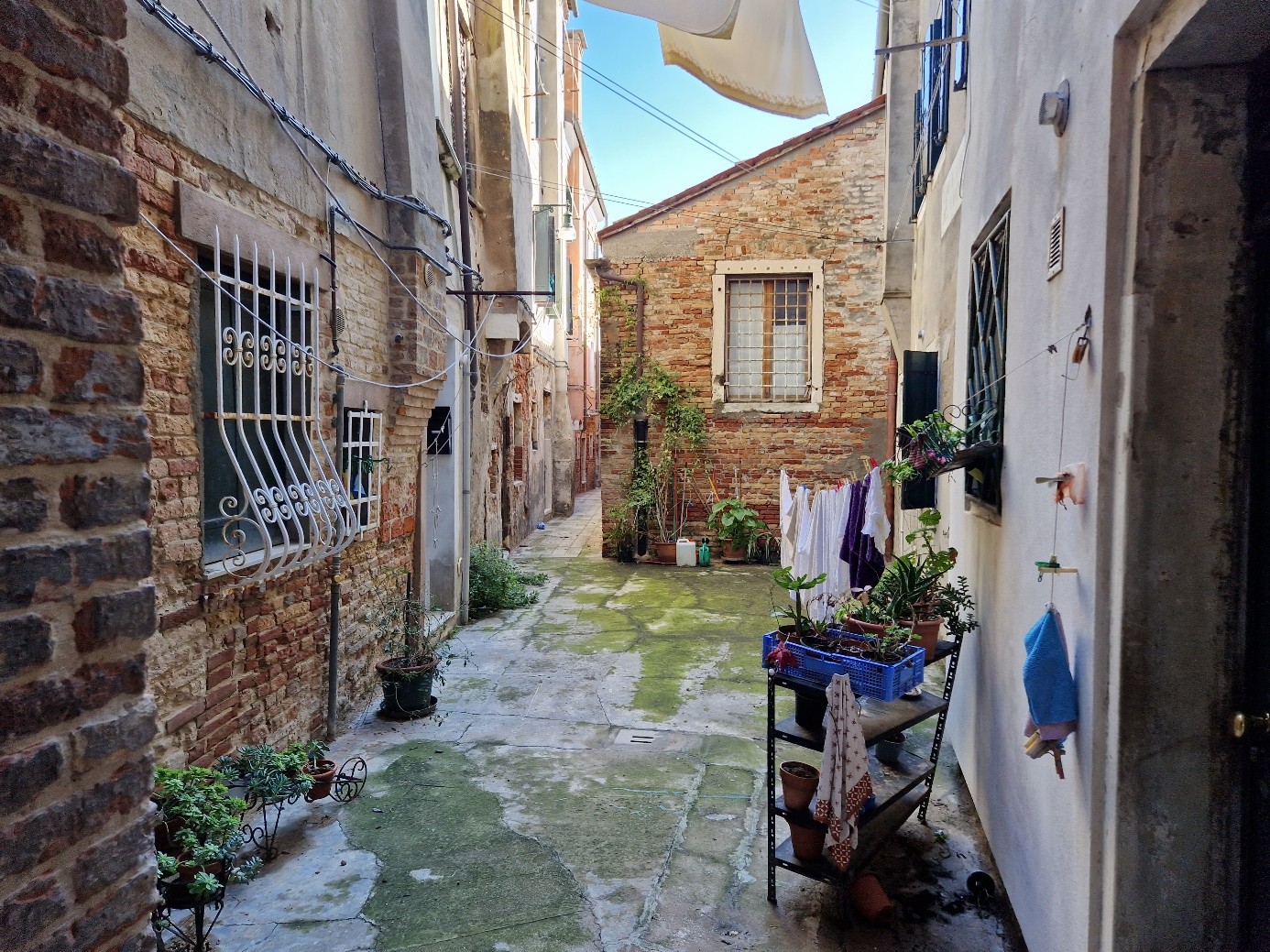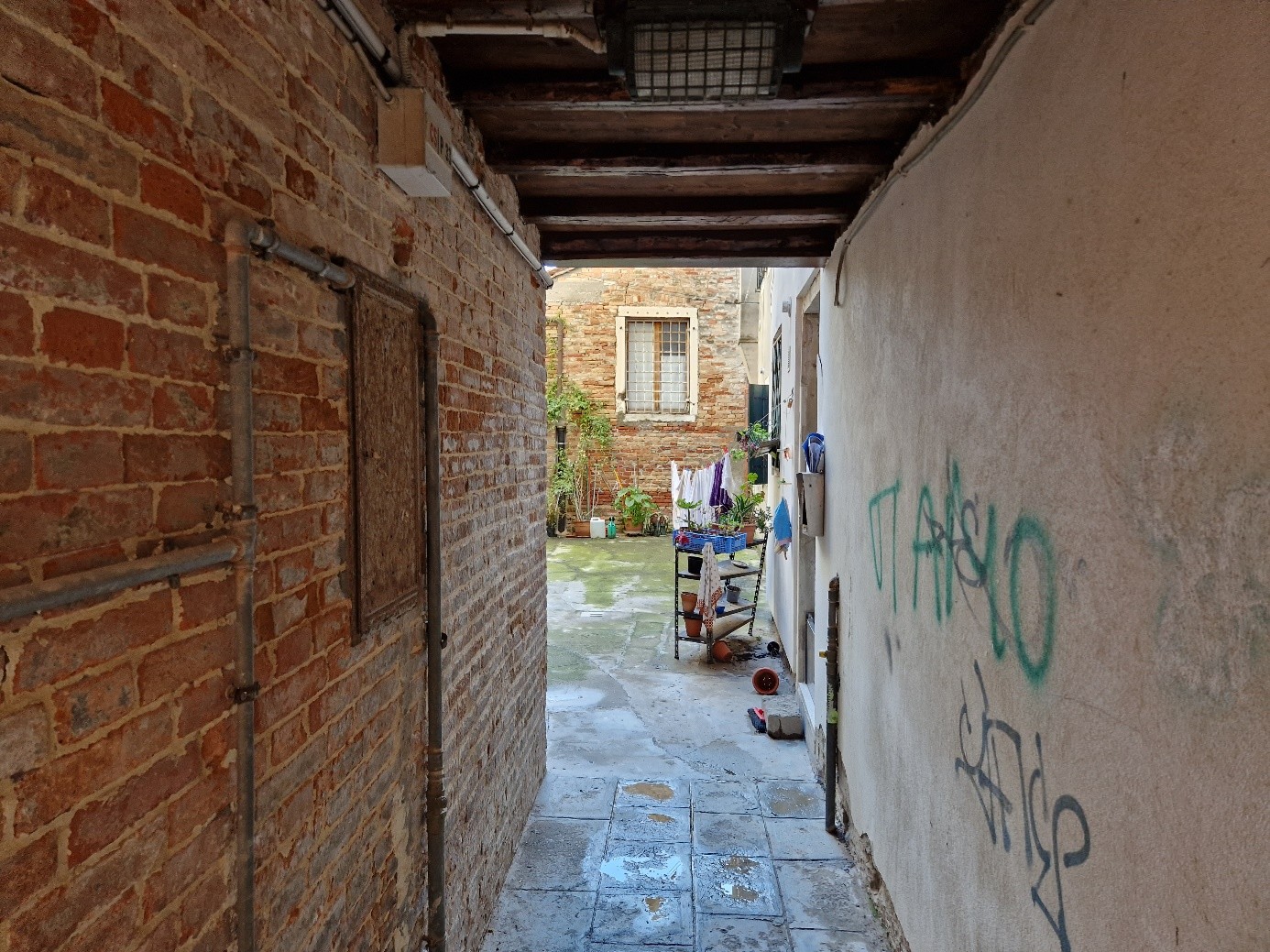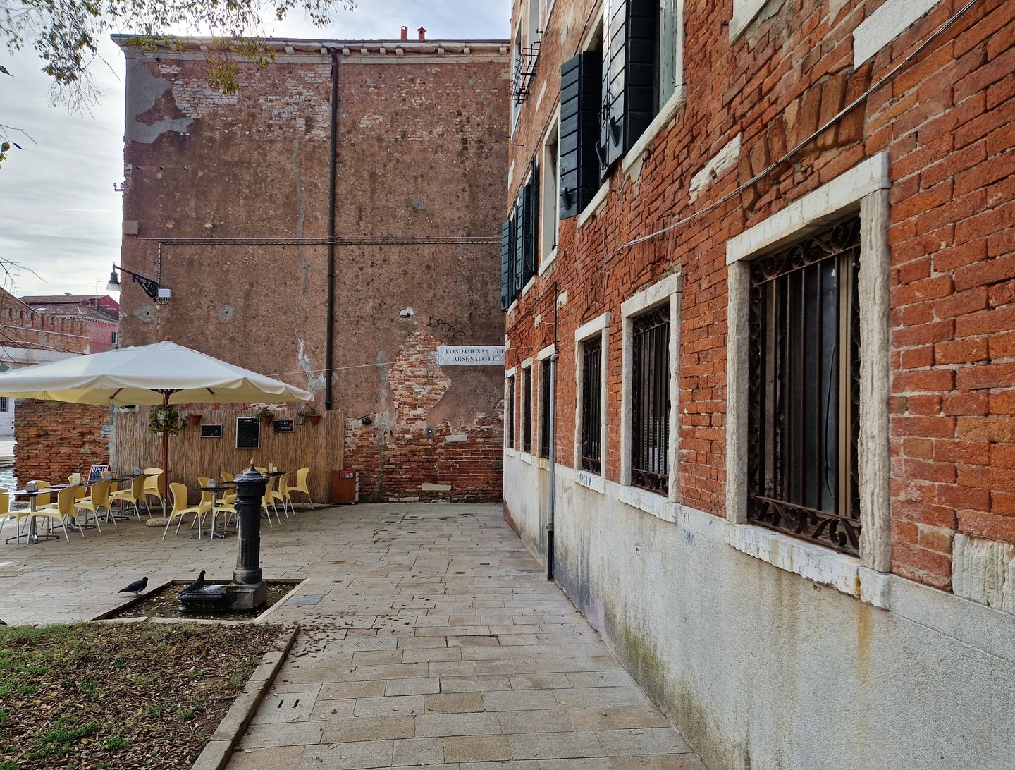 Oui, on sera bien sur cette place tranquille…. On va d’abord voir le plus beau sottoportego de Venise, celui de la corte Nuova…