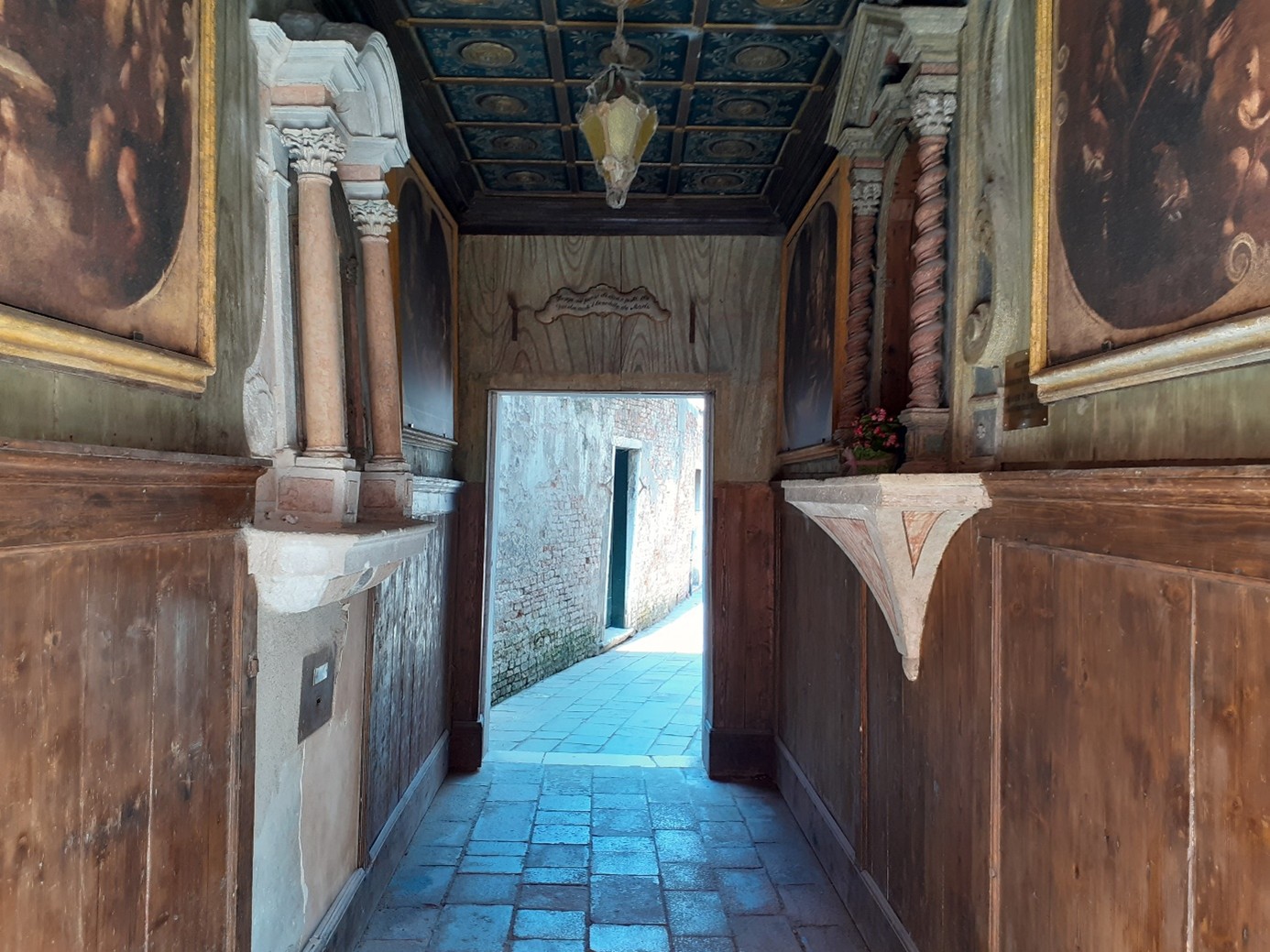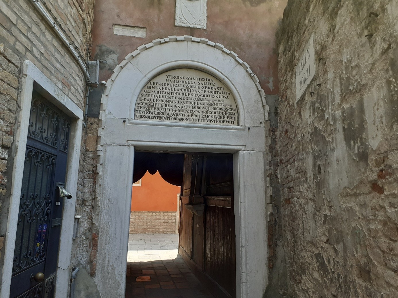 Au-dessus de l'entrée du sottoportego de la corte nova, il est écrit que ce lieu fut protégé de la mortalité dominante (surtout pendant la peste de 1630) et des bombes de la première guerre mondiale...