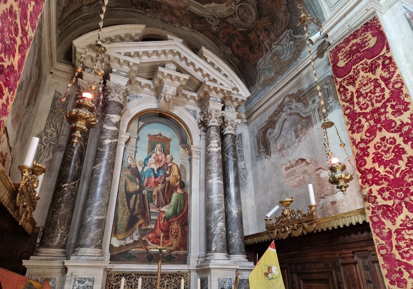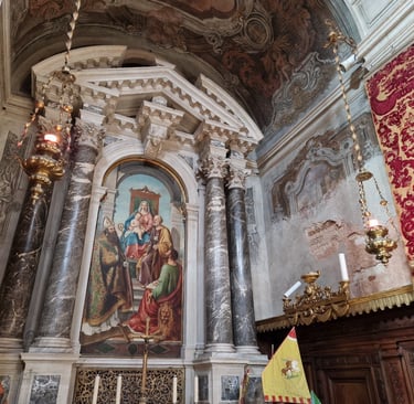 En effet ! La tradition voulait que l'Amiral, une fois nommé, se rende dans cette église pour une messe spéciale dédiée aux marins. San Foca, un martyr chrétien du IIIème siècle, étant le saint protecteur des marins, est représenté sur le retable réalisé en 1865 par Maria Santini, en compagnie de San Marco et de la Sainte Famille...