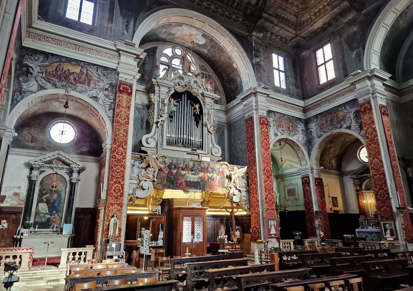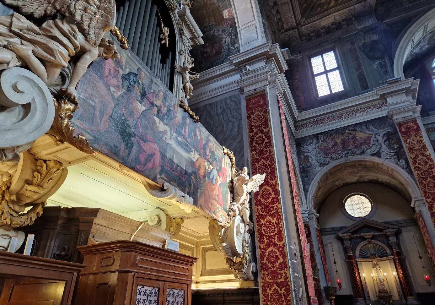 En-dessous de l'orgue, il y a une Cène...