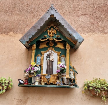 Sur le retable de Cosroe Dusi, réalisé au XIXème siècle, Santa Filomena est représentée entre Santa Lucia et Sant'Agata, qui ont vécu à la même période...