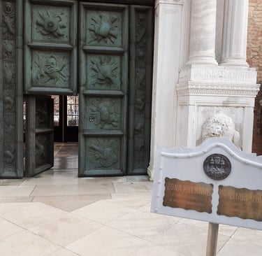 A côté, au-dessus de la porte latérale qui donne sur la fondamenta del Piovan o Erizzo, on peut admirer le monument funéraire dédié au Doge Francesco Erizzo. Cette sculpture en marbre fut réalisée par Matteo Carmero en 1633...