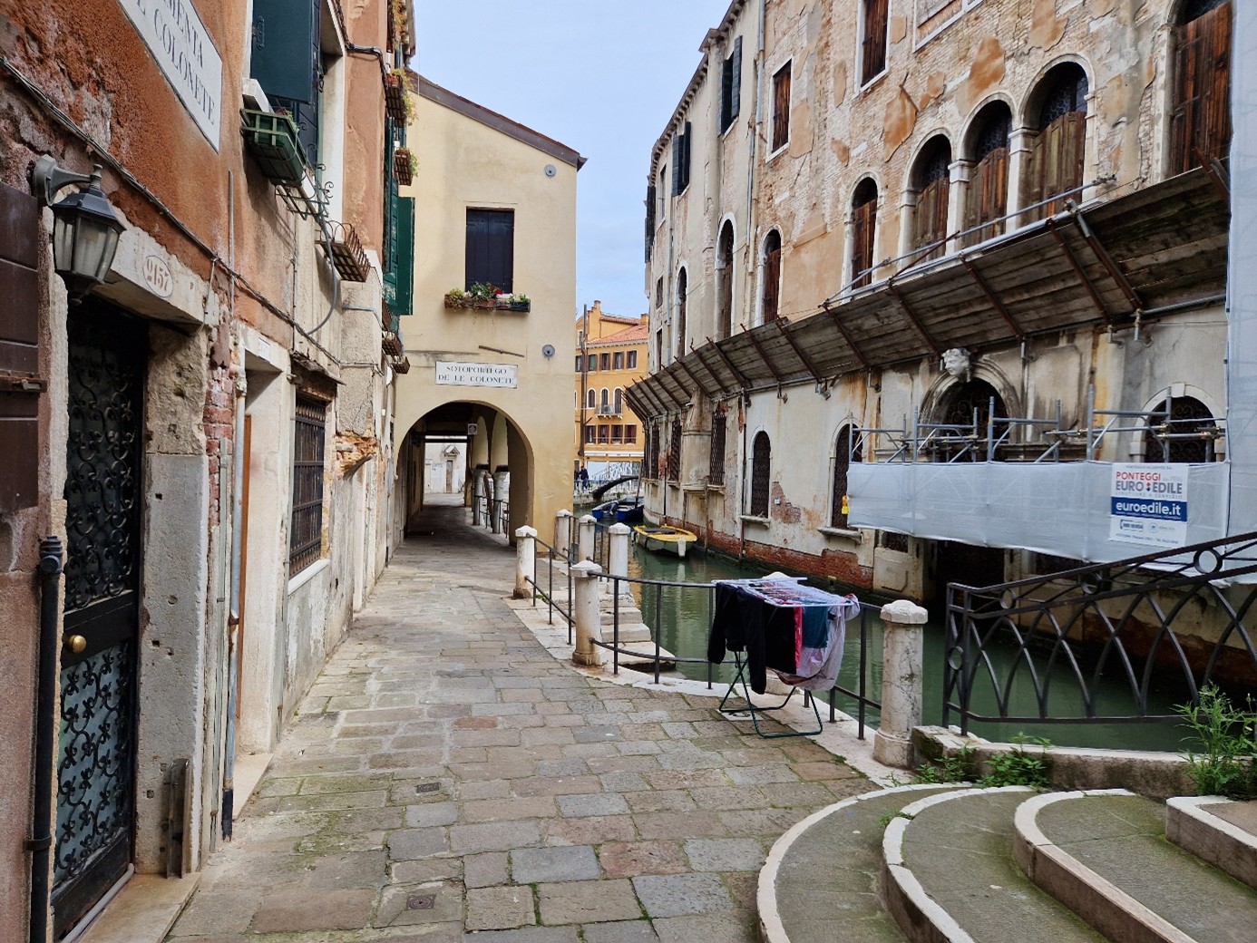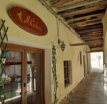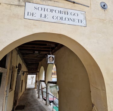 On rejoint maintenant le sottoportego de le Colonette, sous lequel se trouve notre osteria : Al Cantinon !