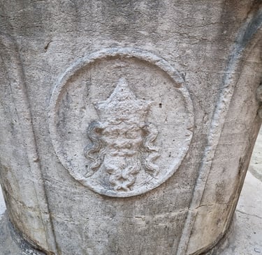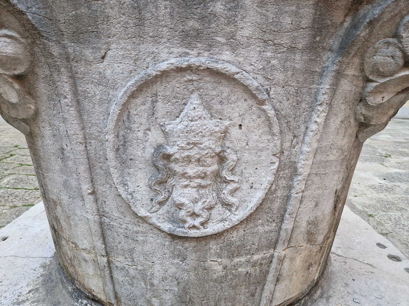 Sur la vera da pozzo, il y a un visage de gravé !