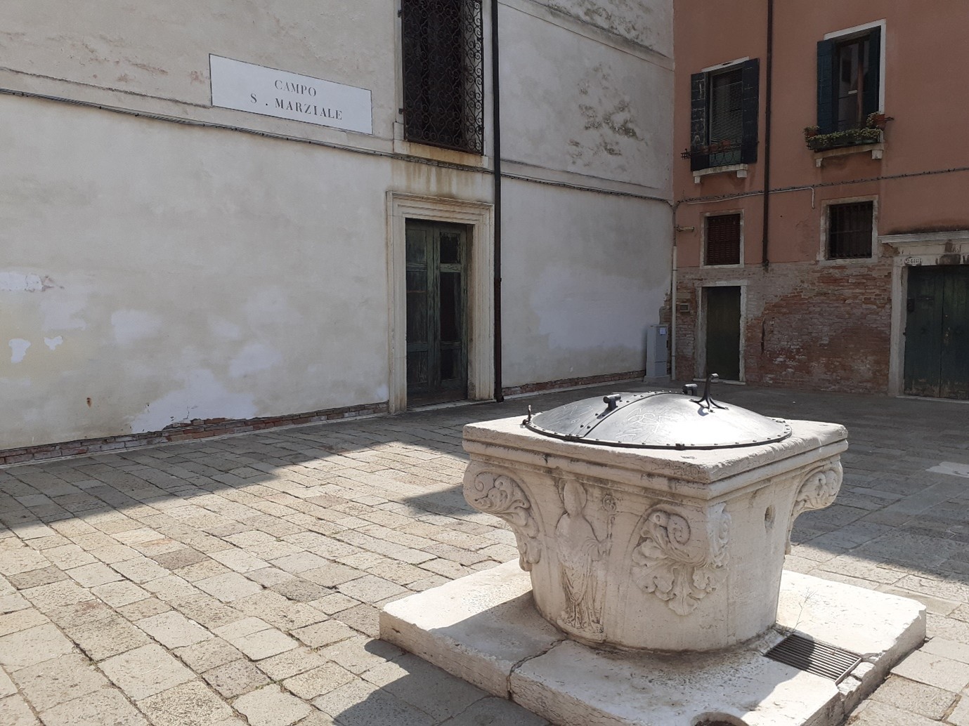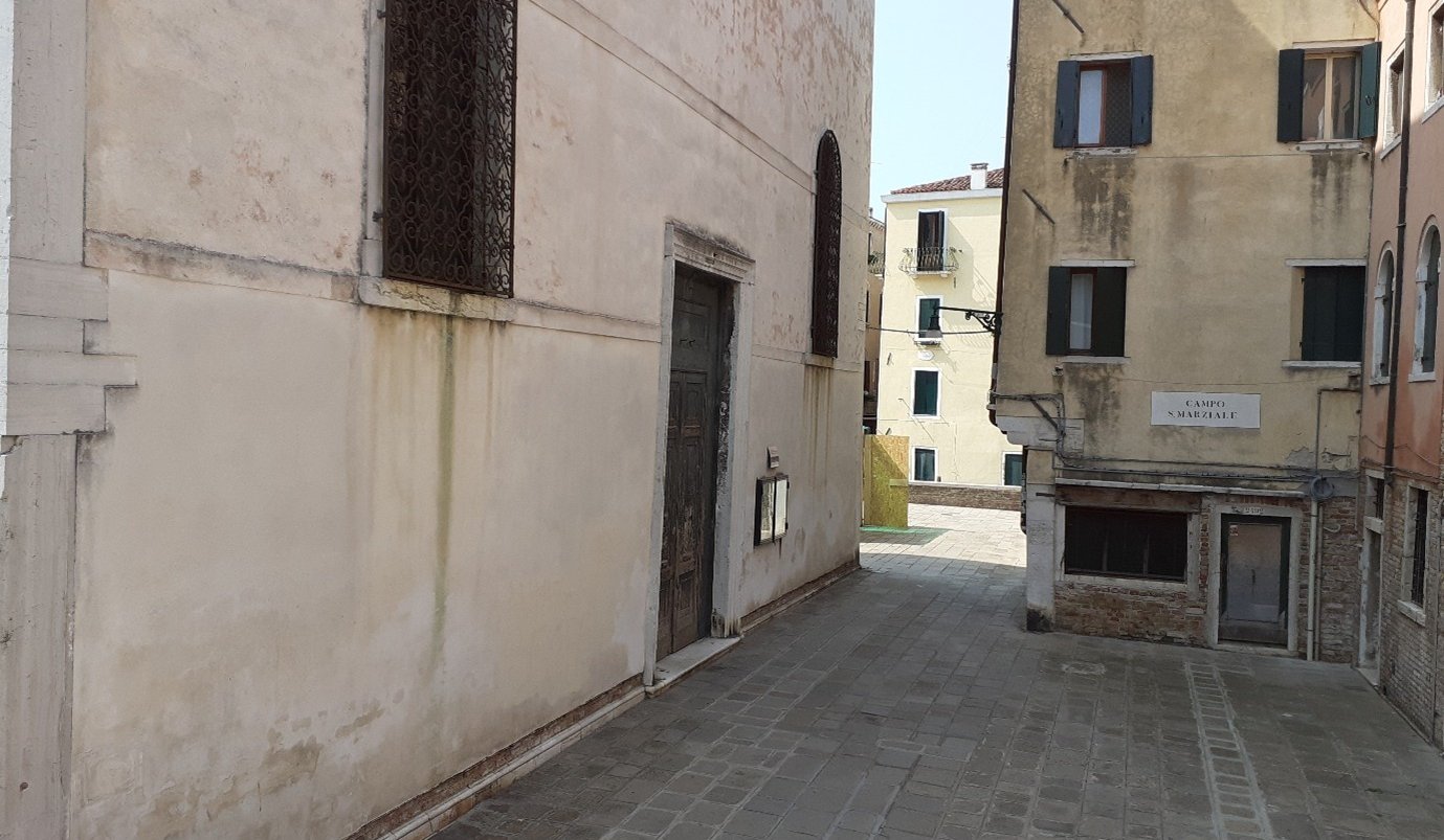 Aujourd’hui, on va faire une étape sur l’îlot de San Marziale. On va prendre le rio della Sensa jusqu’au canal della Misericordia… puis on va sur la droite… on rejoint le rio di Noale… et on tourne à droite pour prendre le rio del Trapolin, du nom d’une famille originaire de Chypre… On s’arrête sur le campo San Marziale…
