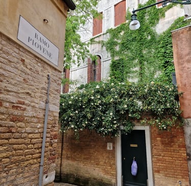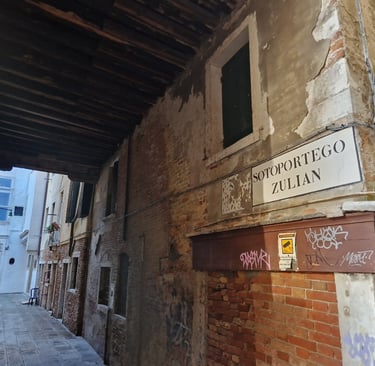 Maintenant, on rejoint le campiello dei Fiori par la corte Bragadin et, à droite, on passe sous le sottoportego Zulin pour voir la corte Zulian…