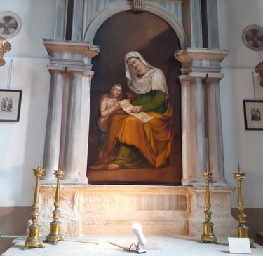 Regarde cette toile de Pascoli : Sainte Anne qui apprend la lecture à sa fille, la Vierge Marie !